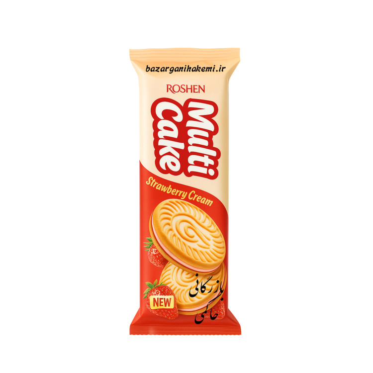 بیسکوییت مولتی کیک روشن 180 گرمی با کرم توت فرنگی دولایه