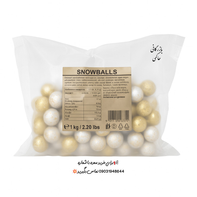 - نوع شکلات: دراژه با روکش شکلات سفید و مغز کاکائویی