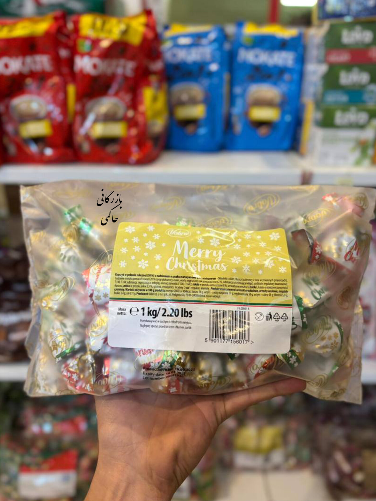 شکلات کریسمسی Merry Christmas مناسب پذیرایی و جشن های عید کریسمس_یک کیلوگرمی| دارای قیمت عمده برای فروشگاه ها و پخش کنندگان