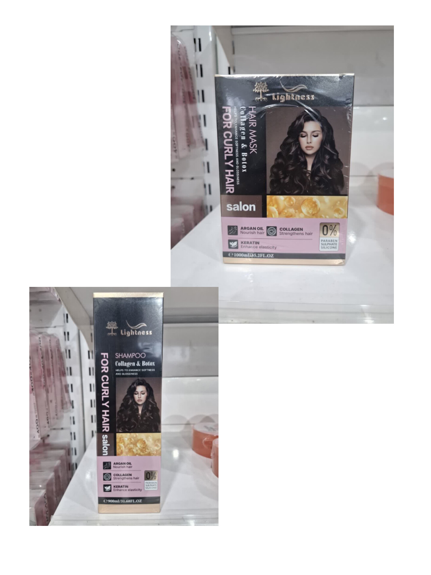 Lightness Hair for Curly Hair (شامپو و ماسک مو برای موهای فر و موجدار) با روغن آرگان، کلاژن، کراتین و بوتاکس سالن، حجم ۱۰۰۰ میلیلیتر (۳۵.۲ فلوز).